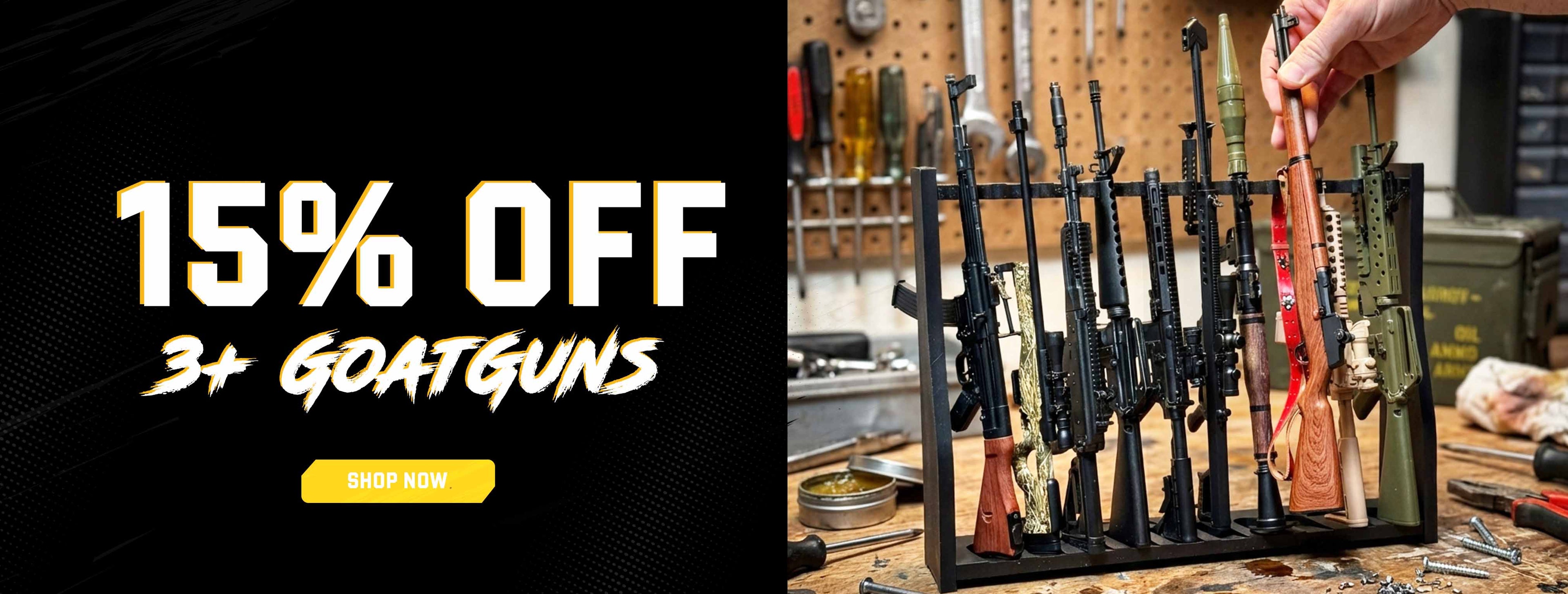 GoatGuns make ones desks look superior. Our gun models will be idolized by the recipient.