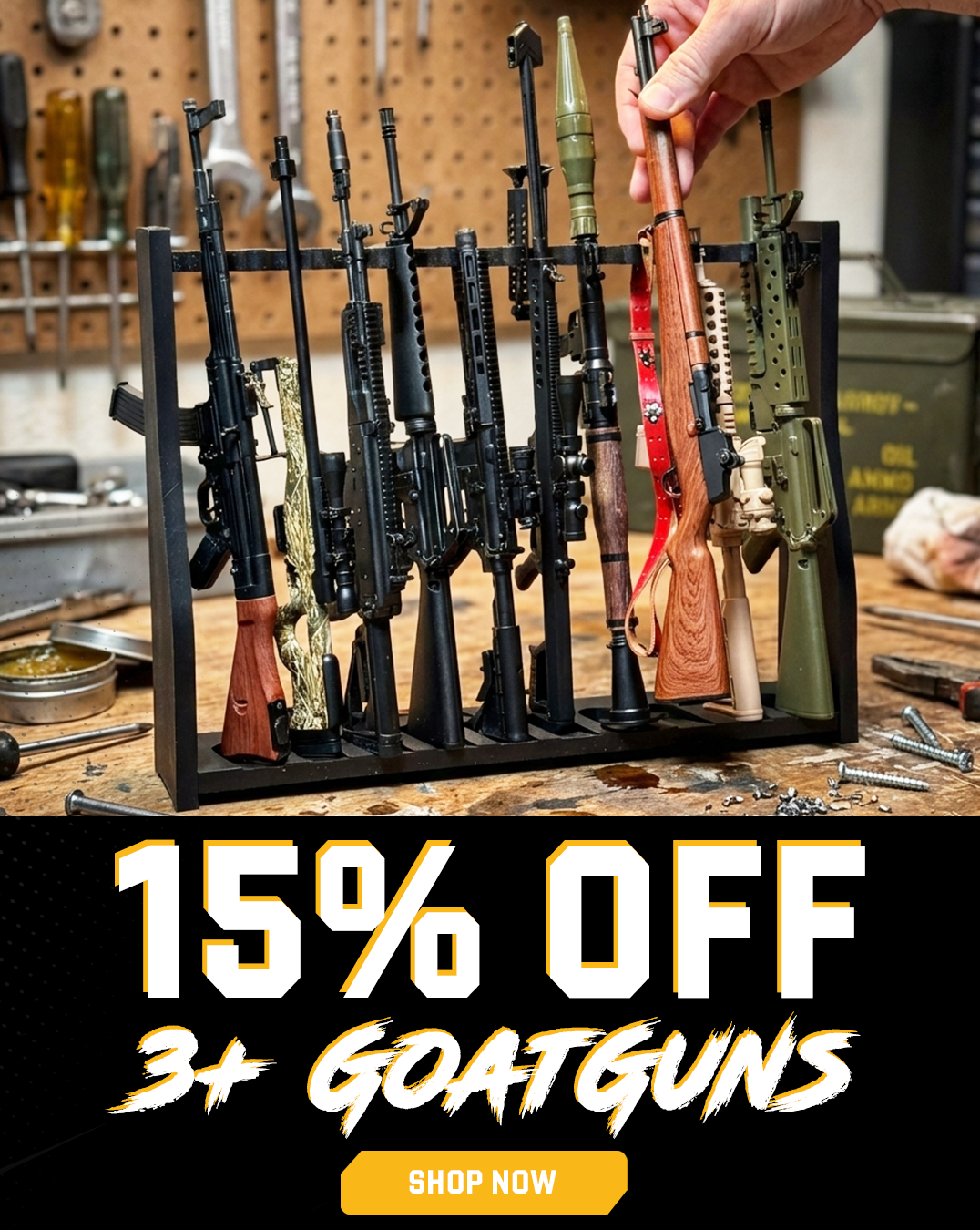 GoatGuns are metal models ranging from 4"-16" in length. Revered by Military, Gamers, EMS & Gunners, these models are something they are all proud to display.