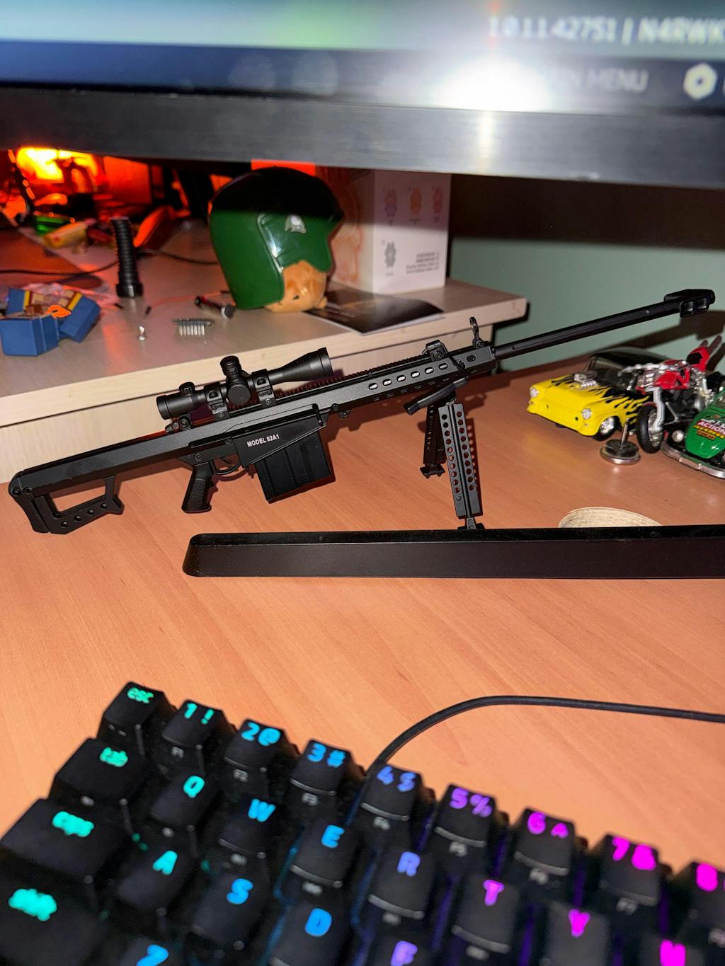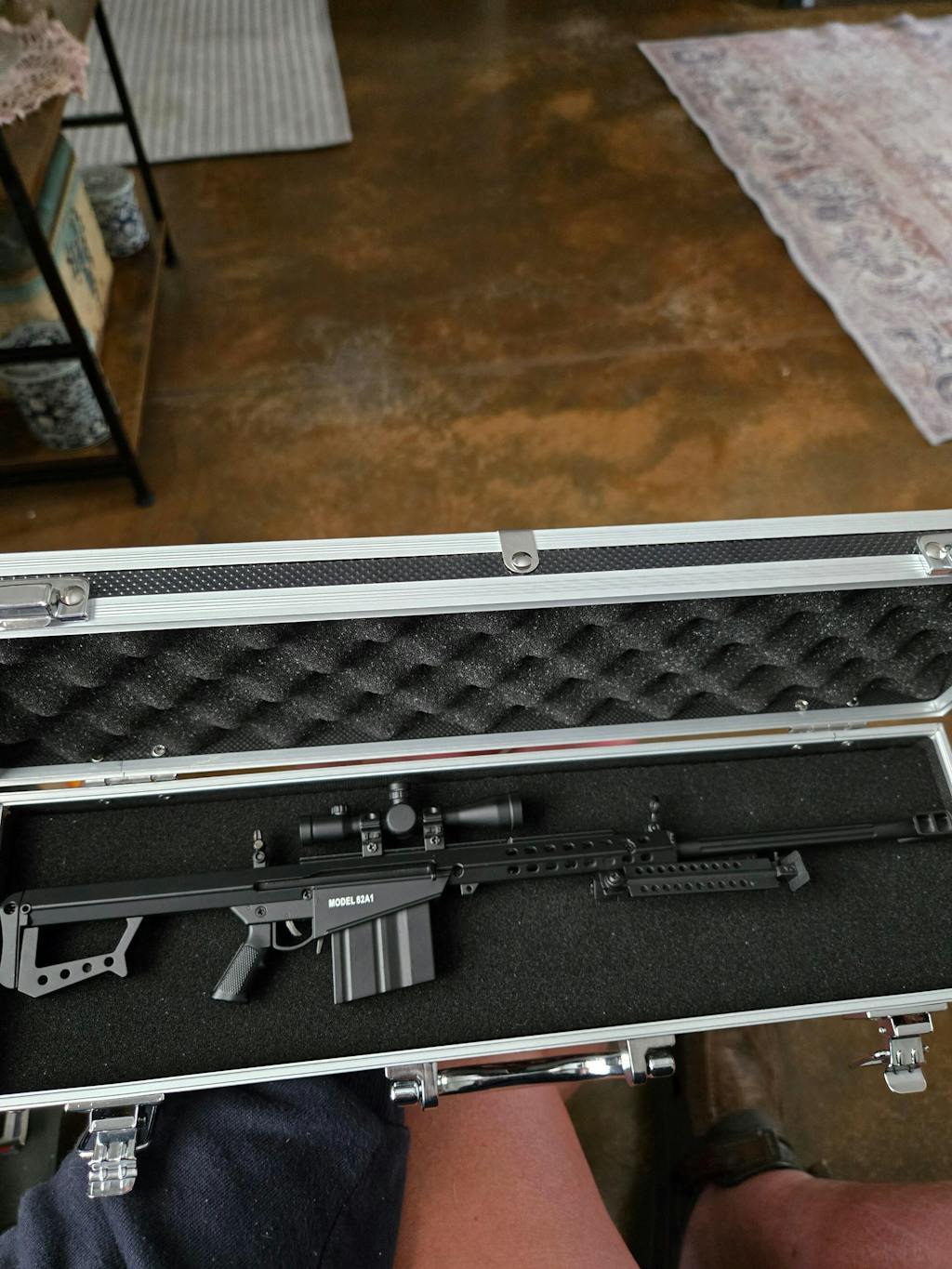 The Barrett M82A1, is a powerful anti-materiel and sniper rifle designed by Ronnie Barrett. Introduced in the 1980s, it is chambered for the .50 BMG (Browning Machine Gun) cartridge. This semi-automatic rifle is renowned for its long-range precision and formidable firepower, capable of engaging targets at extreme distances. It is used by various military and law enforcement agencies worldwide, as well as by civilian long-range shooting enthusiasts. The Barrett Model 82A1's legacy includes its significant impact on the development of large-caliber, long-range rifles and its iconic status in the world of firearms.