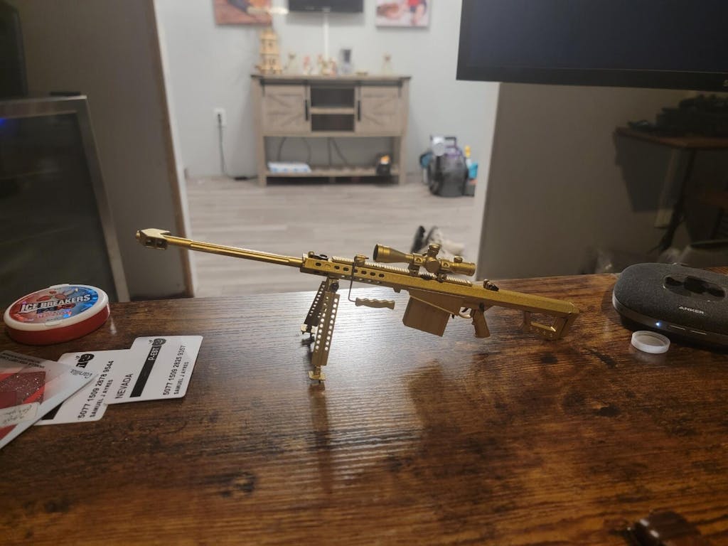 Chest Candy' measures in at 13" (33cm) when fully assembled. It is hand painted gold. Parts are compatible with other .50 cal models to create a unique look (try mixing it with the Black .50 cal!).