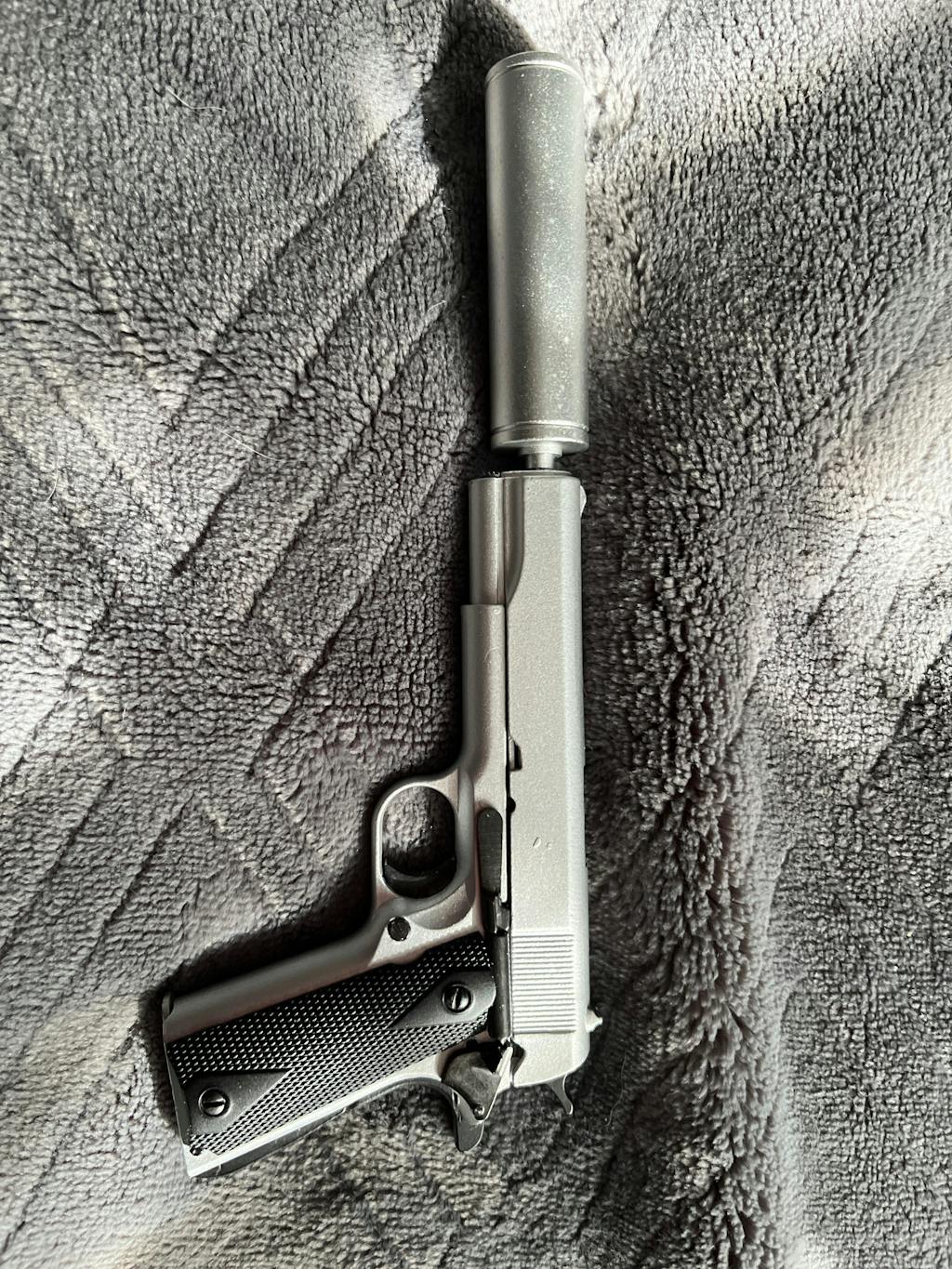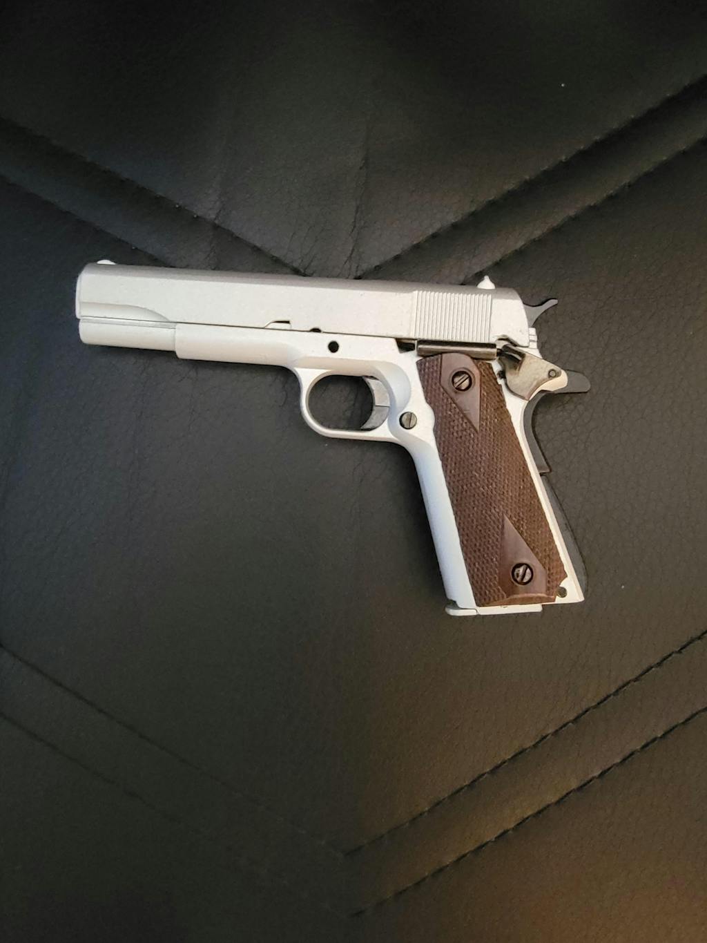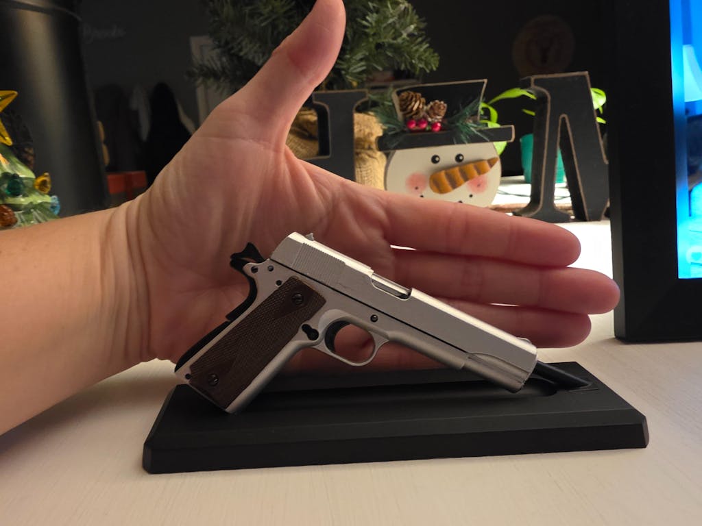 Authentic die cast metal parts on our 1:2.5 scale version of the 1911. Your thumb safety and slide actions all work.