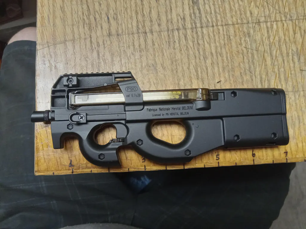 Meet this beautiful little critter Sarge can't keep his hands off of, the Licensed FN HERSTAL P90. With it's unique magazine and overall concept, this Belgium made gem is one cherished and lusted for in real life, but often not had. Now is your chance to get an exact model of it in diecast metal at 1:3 scale.