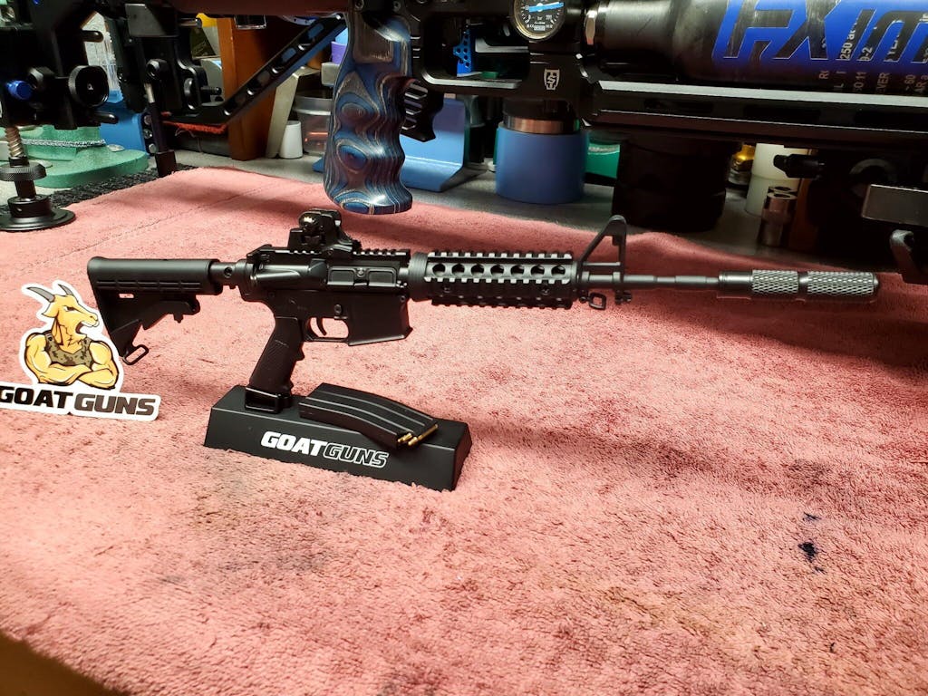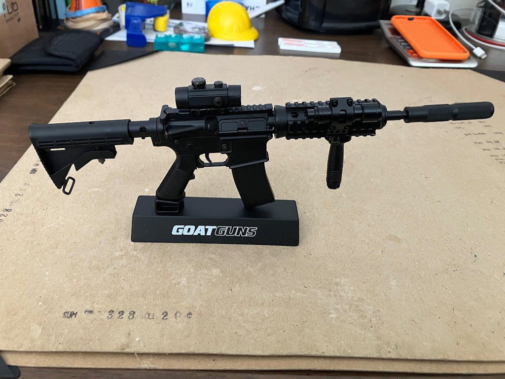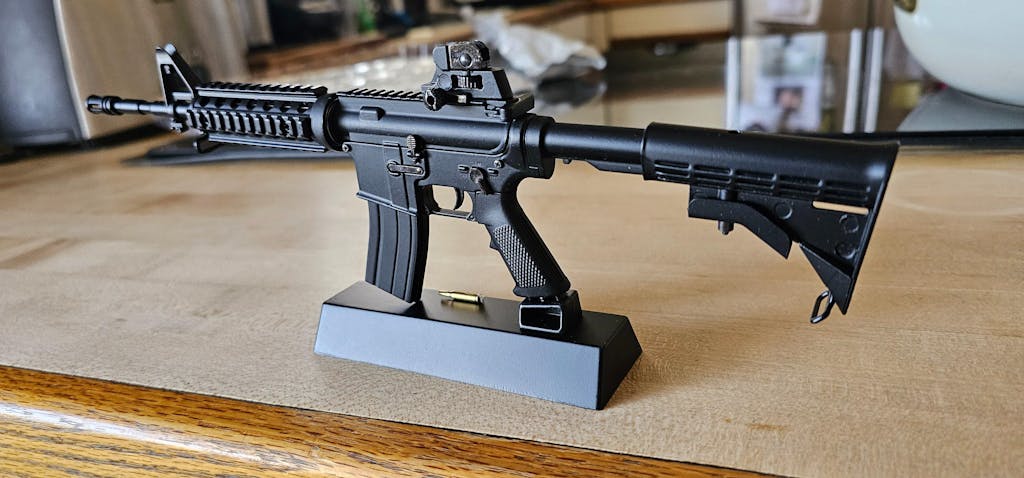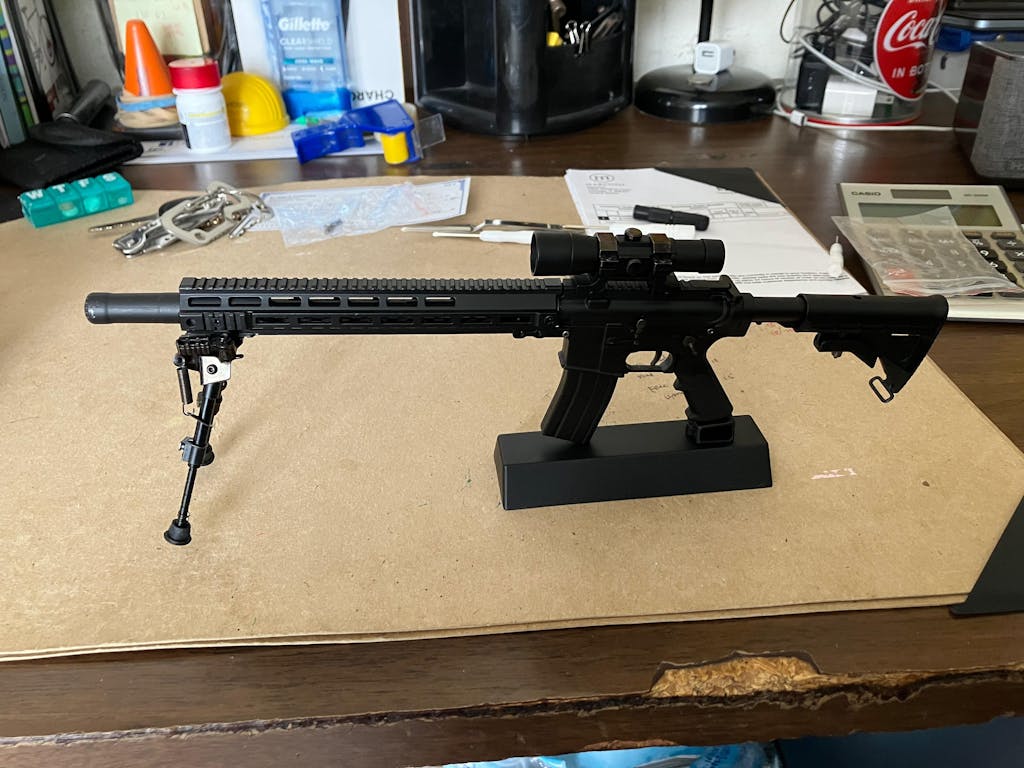 All Metal parts on our 1:3 scale miniature AR15 model. Users can modify into other variants our attachments. Build up, break down and then display proudly to friends and family.